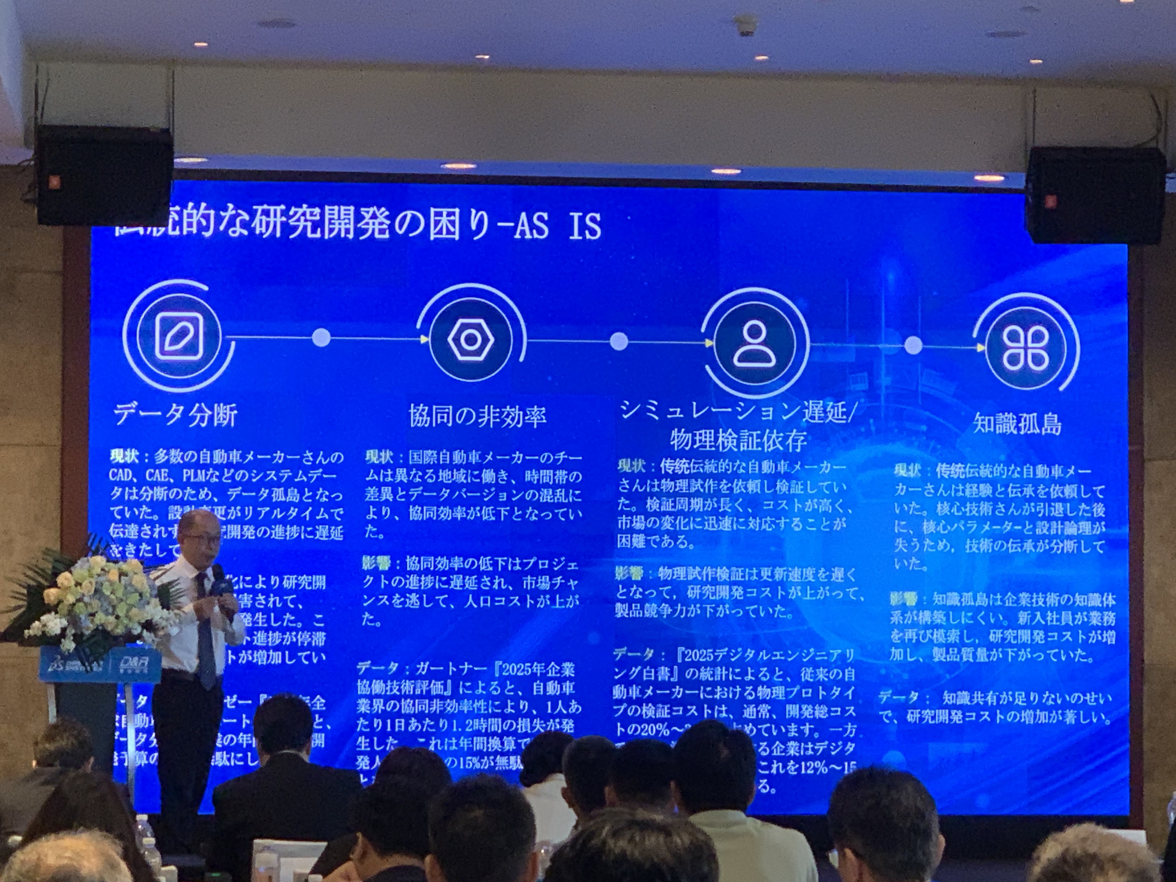 今日的成就,源自客户长期的信赖与支持,得益于ARGO集团的鼎力相助,更离不开达索系统的密切协作。站在新的历史节点,慧舟软件将持续以技术创新为驱动、以专业服务为基石,与客户伙伴协同共进,共筑制造业数字化新图景!随后由Argo Graphics株式会社执行董事池田亮太致辞,值此慧舟软件成立20周年之际,作为重要合资方,ARGO Graphics株式会社衷心祝贺这一重要里程碑!二十年来,ARGO与慧舟软件携手共同推动中国制造业数字化转型。ARGO Graphics作为东京证券交易所一部上市公司,自1996年开启全球化布局以来,已在越南、泰国等东南亚地区及德国、美国设立分支机构。在中国市场,慧舟软件作为ARGO海外投资的核心合资企业,现已构建覆盖全国的服务网络,成为ARGO全球战略布局的重要支点。多年来,ARGO率先将达索3DEXPERIENCE平台架构整合至制造业全流程,提供从设计仿真、智能制造到物联网可视化的端到端解决方案。同时,我们持续加码AI技术的研发,赋能产业智能化升级。未来ARGO将继续深化与慧舟软件的战略协同,投入更多技术资源与创新成果,助力中国客户实现数字化转型新突破。我们坚信,在智能制造的新时代,双方的合作必将创造更大价值!达索系统中国华南区高级销售经理程书意,值此慧舟软件成立20周年之际,我谨代表达索系统向慧舟软件致以最诚挚的祝贺!慧舟软件与达索系统在中国同年创立,二十年来风雨同舟。作为达索系统重要的核心合作伙伴,慧舟软件凭借其深厚的技术积淀和丰富的行业经验,与达索系统携手为各行业客户提供卓越的数字化解决方案和技术支持。当前,中国制造业正面临数字化转型的关键时期,达索系统与慧舟软件基于二十载的技术协同积淀,已构建完备的数字化转型服务体系,将以全链路解决方案持续赋能企业数字化变革。我们相信,通过双方的紧密协作,必将助力更多中国企业实现数字化升级,共创智能制造的崭新未来!达索系统大中华区CATIA技术顾问程炎,围绕AI驱动+3DEXPERIENCE赋能:重构产品研发敏捷设计进行深入浅出的讲解,涵盖达索系统AI如何驱动和赋能整个产品研发的敏捷设计。首先明确AI是未来工业软件的发展方向“谁能驱动AI,谁就能处于工业软件的标杆地位。”然后从知识工程,产品模板设计等方面引出AI的设计理念,从二维草图的自动约束到三维零部件的自动建模;从语言交互,到方案探索、智能决策;从造型设计到概念设计,再到工程细化与制造;全面阐述达索系统AI技术如何提升设计效率与质量,缩短产品上市时间,降低成本并挖掘创新。突出达索系统AI技术在提升企业数据处理与决策能力方面的显著优势。