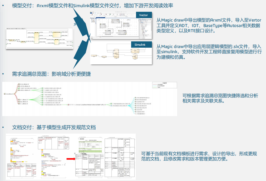• Magic工具可导出各个SWC的.slx文件到matlab工具继续设计simulink的行为建模和仿真