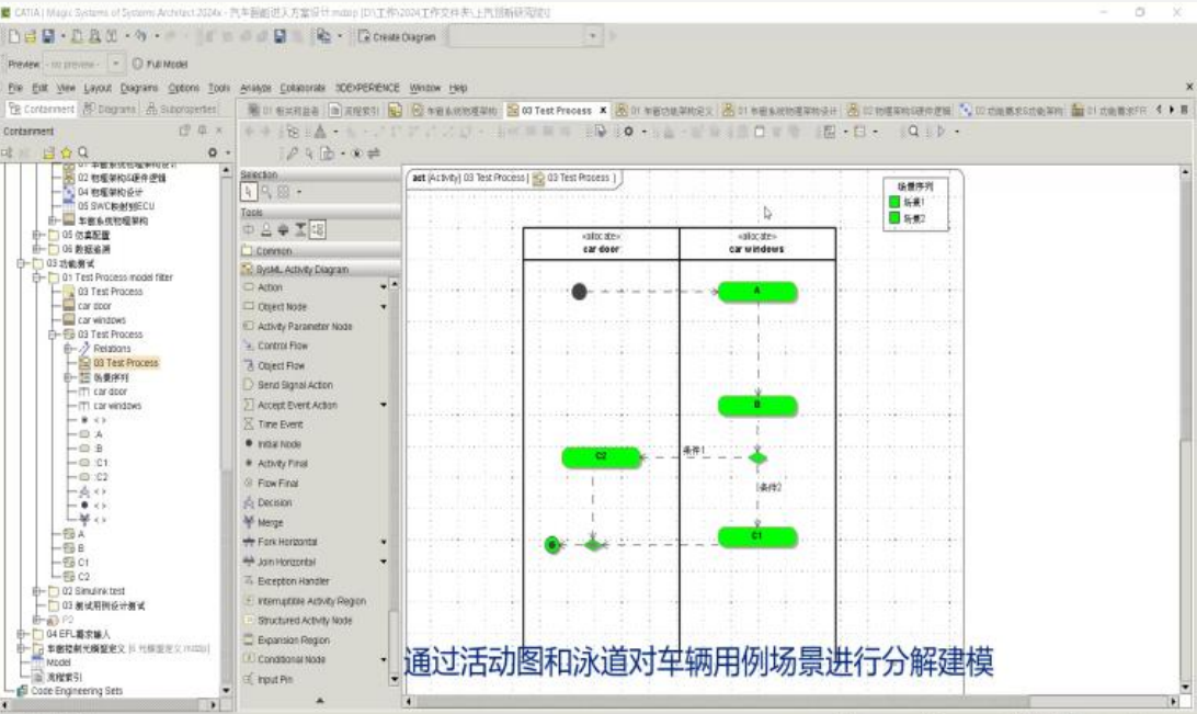 功能层(F):基于用例分析开展功能交互设计,通过活动图、时序图完成行为仿真,明确车身域各功能模块的协同逻辑;